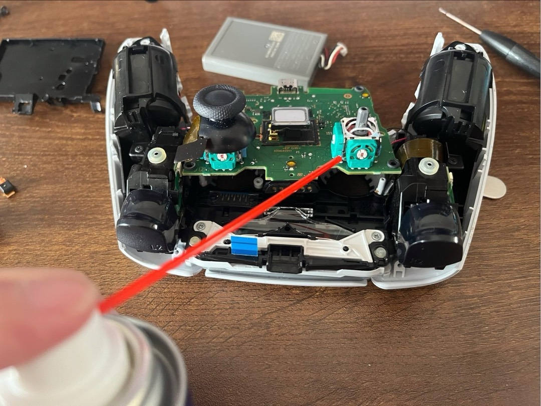 拿出準備的wd40,搖勻後就可以對着漂移的搖桿進行清潔了,不要噴的太多,適量噴個兩下就行。然後靜置晾乾十分鐘。