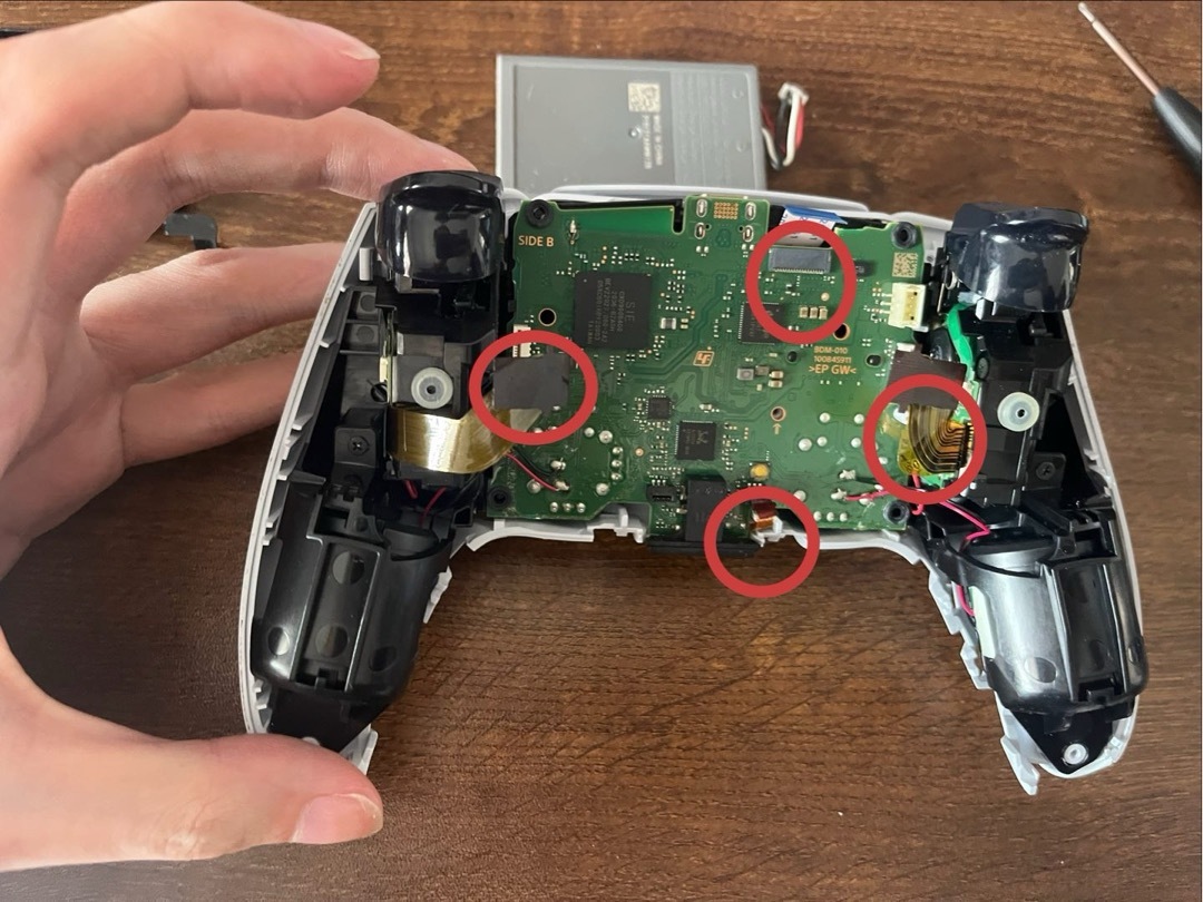 pcb反轉完成後,取下右搖桿露出搖桿內部。