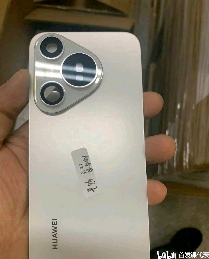 ——据了解华为 P70 标准款,背盖实机照现已公布,采用三角形影像矩阵,内置一大两小共三摄,Deco玻璃饰片+银白色AG玻璃机身。
