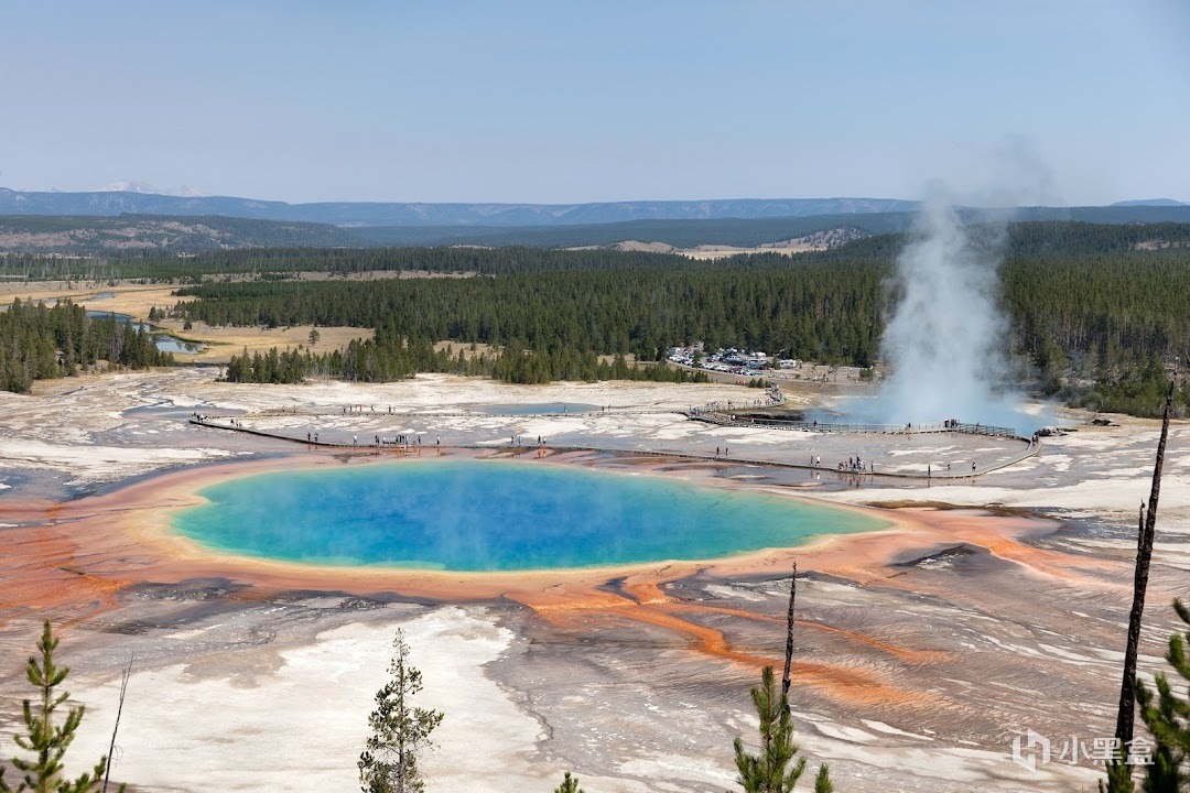 大棱镜温泉 (又称大彩虹温泉) 位于美国黄石国家公园,是美国境内最大全世界第三大温泉,最大直经约100公尺,水温高达摄氏85度,每分钟涌出2100公升温泉。 其湖面颜色会随着季节改变,这是因水体中藻类内的叶绿素和类胡萝卜素多寡相关,春夏天多为橙红色,冬天则转为深绿色。