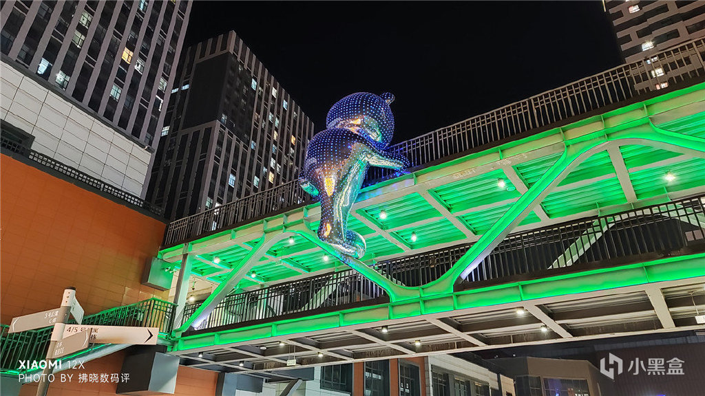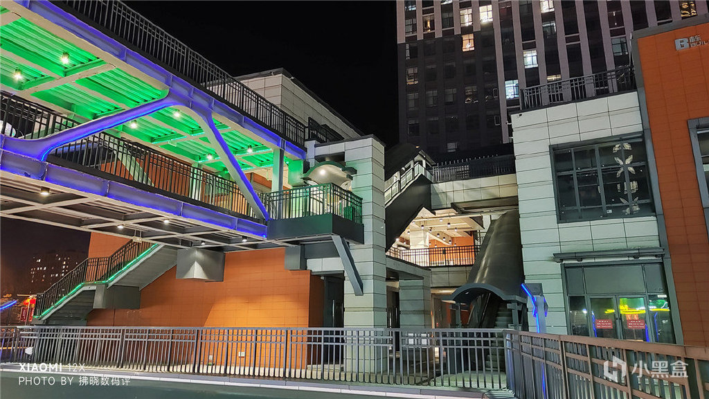 比如上面这两张使用小米12X随拍的夜晚街景样张,在实现对高光压制、暗光提亮的同时,画面色彩与照片整体亮度也拿捏有度,照片中没有出现曝光或过度涂抹等情况的发生。虽然照片相比肉眼所见实景略显浓郁,但单从样张的观赏性角度而言,小米12X的综合夜景表现还是很不错的。
