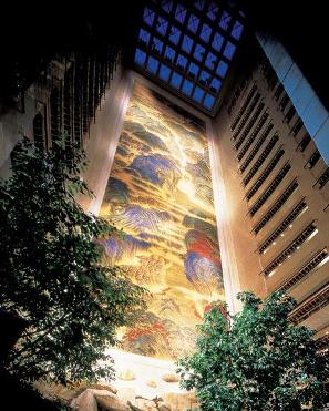 這個壁畫有16層樓高,長51米,寬14米。人們只要乘坐觀光電梯就可以在酒店的41層到56層之間欣賞到這幅巨畫。