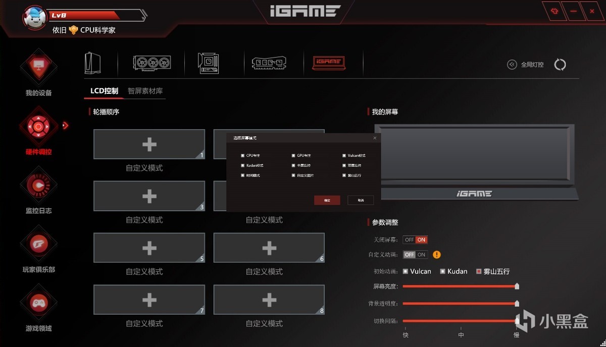 当然你还可以发挥“维”LCD智屏的传统艺能,在iGame Center中更换或者上传自己喜欢的效果。