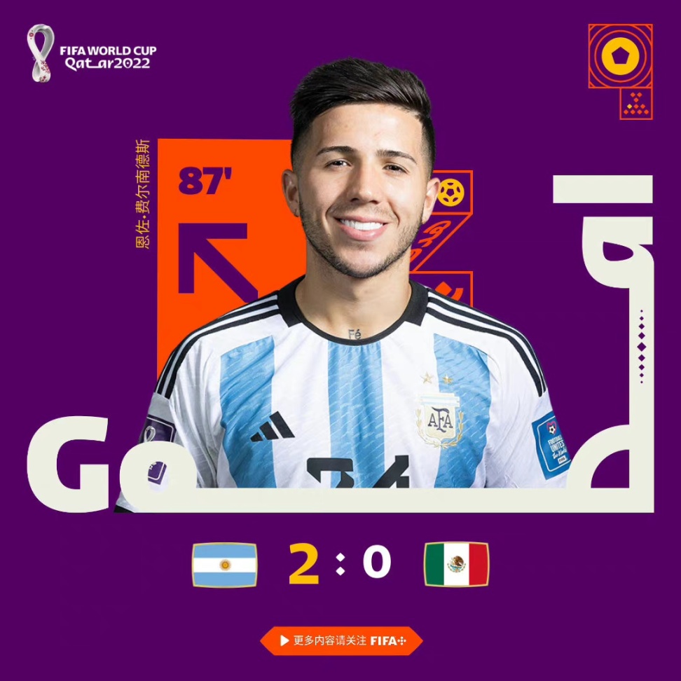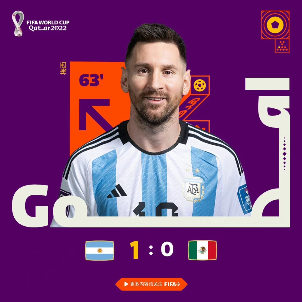 阿根廷2-0击败墨西哥,此役迎来世界杯21次出场追平马拉多纳的梅西传射建功,取得世界杯第13场胜利,超越马拉多纳,成为队史第一人。