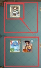 左边上方代表对方的召唤物区, 下方为我方召唤物区.框内上方, 是指对方的支援牌放置区, 下方是我方支援牌放置区. 最多放置四个, 要再使用就得替换掉已用的四张之一.