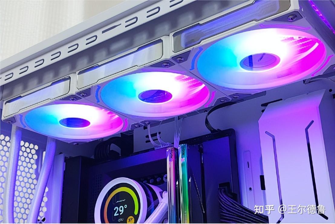 装好风扇后整套水冷的颜值很在线,简约又不失美感,白色给人一种优雅的感觉,很耐看。
