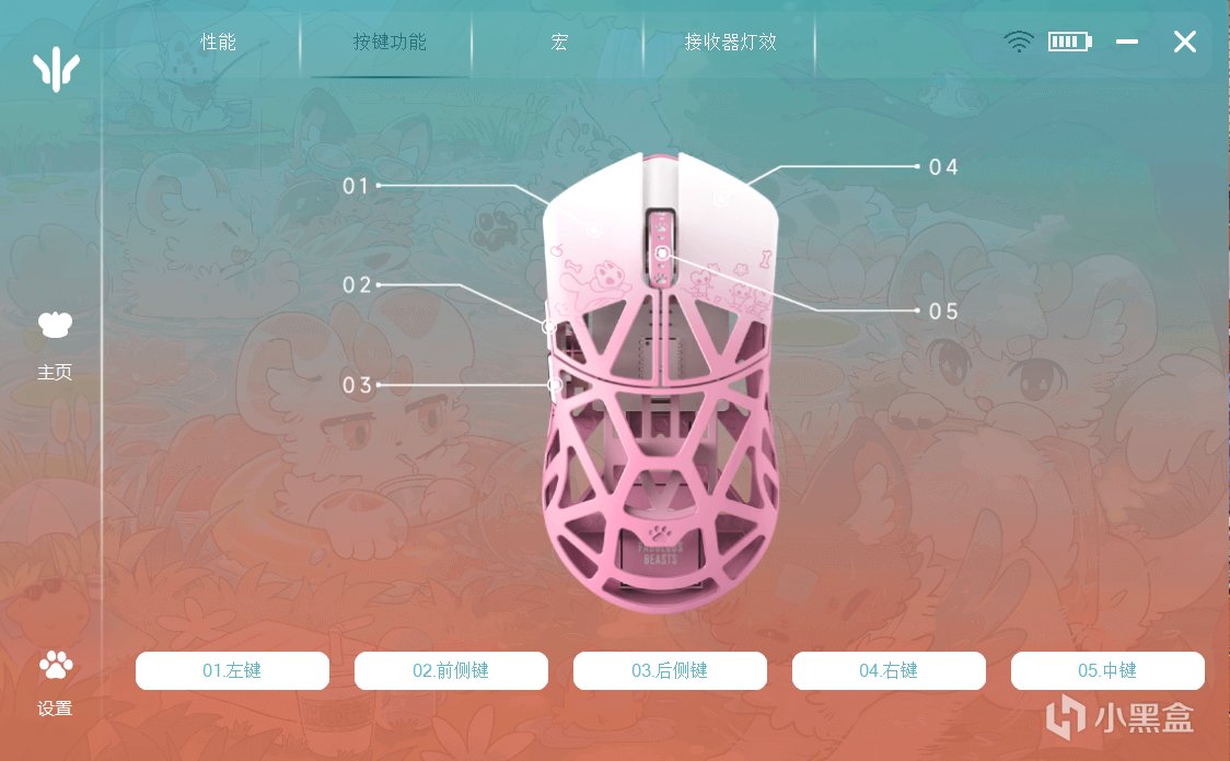 鼠標的驅動方面,不看我還沒注意,一看我丟????無線8k????好好好,這真的不錯啊。驅動界面設計的很好看,其他的功能設計也不錯,鼠標的dpi調節啊,回報率調節啊,按鍵的映射啊,宏的設計啊,接收器的燈效都可以設計。可以說是做的十分的完整。