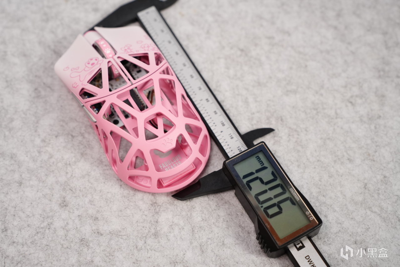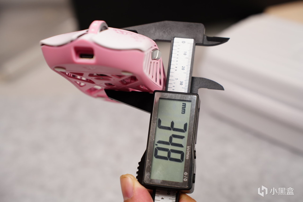 鼠標左邊有兩個側鍵,實測中手抓握的時候並不容易誤觸,但是對於我這個大手來說還是有點容易誤觸的。鼠標最高高度爲34.8mm(存在誤差)相對於萬靈的花獸來說手感高了點。