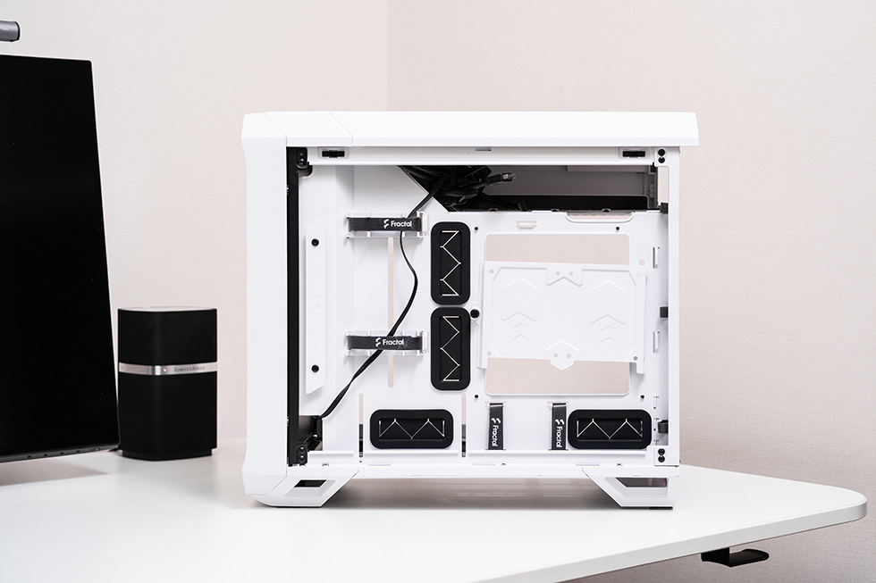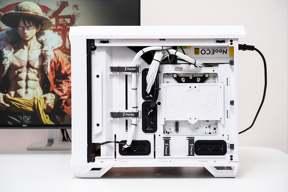 已出玻璃面板后的内部结构。Torrent Nano的背部空间还是非常充裕的,无论是安装280的水冷还是高阶的塔式风冷,都有着相当不错的兼容性。