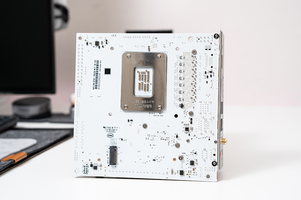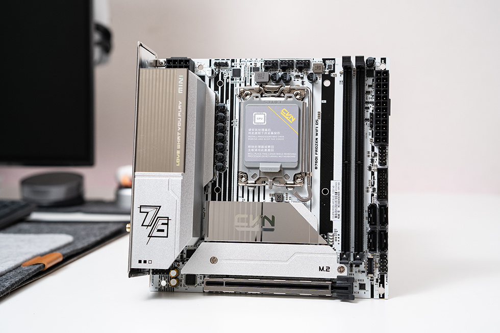 主板选用了来自七彩虹的CVN B760I FROZEN WIFI D5 V20,采用了纯白色 PCB 设计,搭配银白色的散热装甲,整体颜值拉满,可以说是目前市面上个人认为最好看的白色B760 ITX主板。