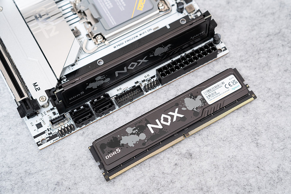 主板带有提供两条 DDR5 内存插槽,单槽支持48GB内存。 XMP 加速模式下最高 8000MT/s的高频率。这次搭配使用了宇瞻 暗黑马甲 DDR5,内存颗粒为镁光颗粒,XMP 频率则为 6400,时序 38-38-38-84,电压1.2V,搭载 PMIC 电源管理晶片及 ONE-DIE ECC 内存纠错机制,支援 Intel XMP3.0 轻松一键超频。