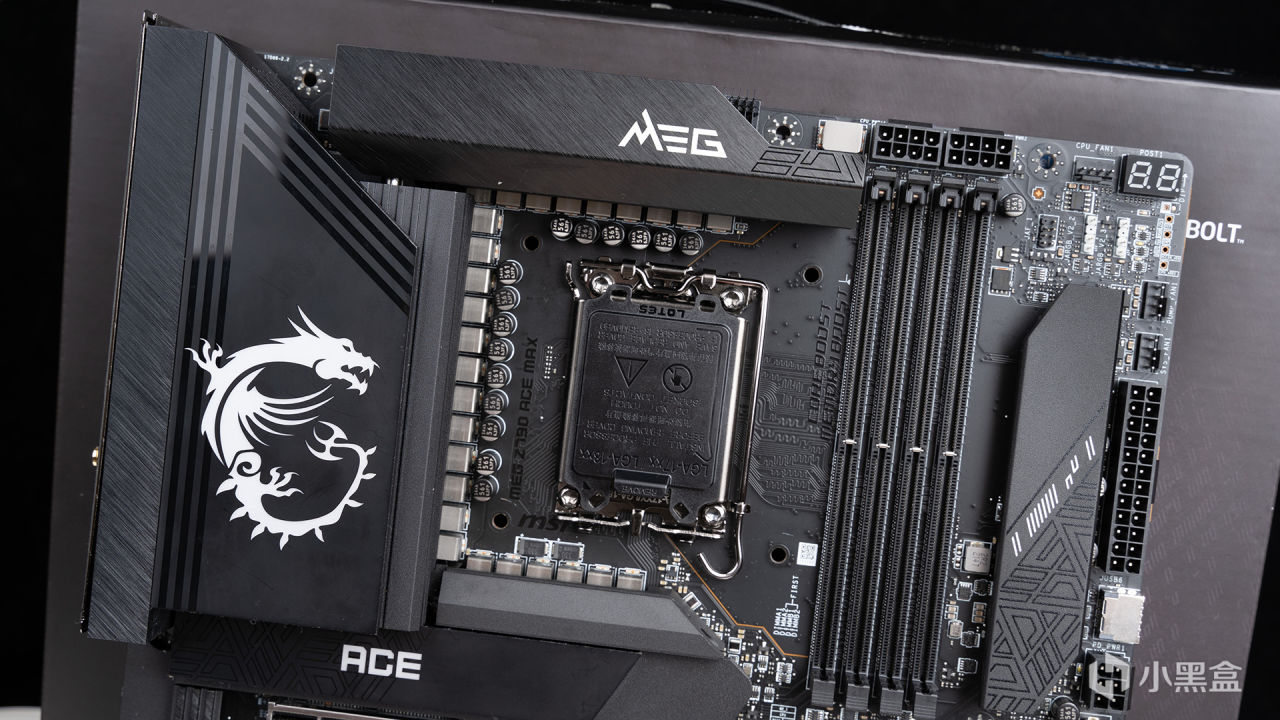 MEG Z790 ACE MAX 战神在微星Z790家族中属于次旗舰定位,它采用了超级豪华的24+1+2相供电规格,CPU部分最大电流可支持到105A,并搭配双8Pin CPU供电接口。供电散热部分,它拥有大面积堆叠式散热鳍片和U型双导热管串联,可以确保供电部分的散热效率和最大稳定性。