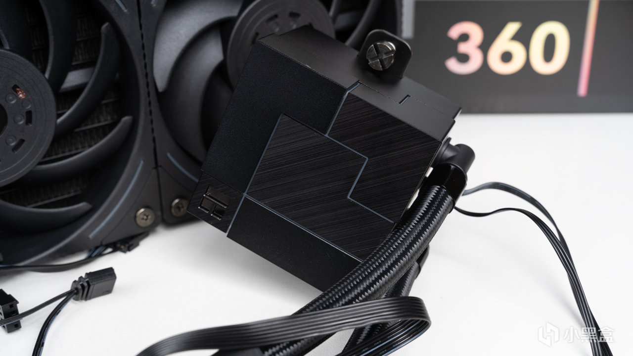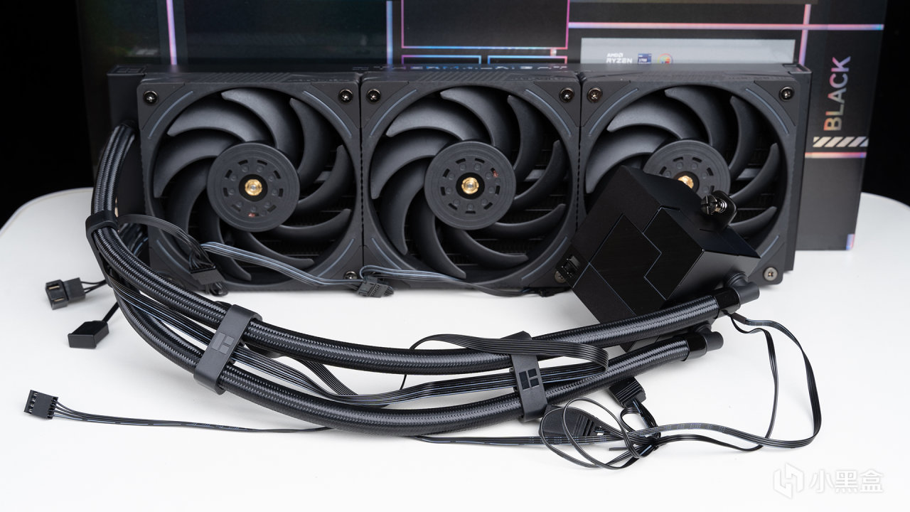 最后是CPU散热部分,众所周知酷睿i9-14900KS的发热量极其恐怖,这里使用了利民CORE MATRIX 360 BLACK幻芯矩阵这款水冷进行压制,从包装设计风格可以发现,这是一款造型具有线条感、轻RGB特性的产品。
