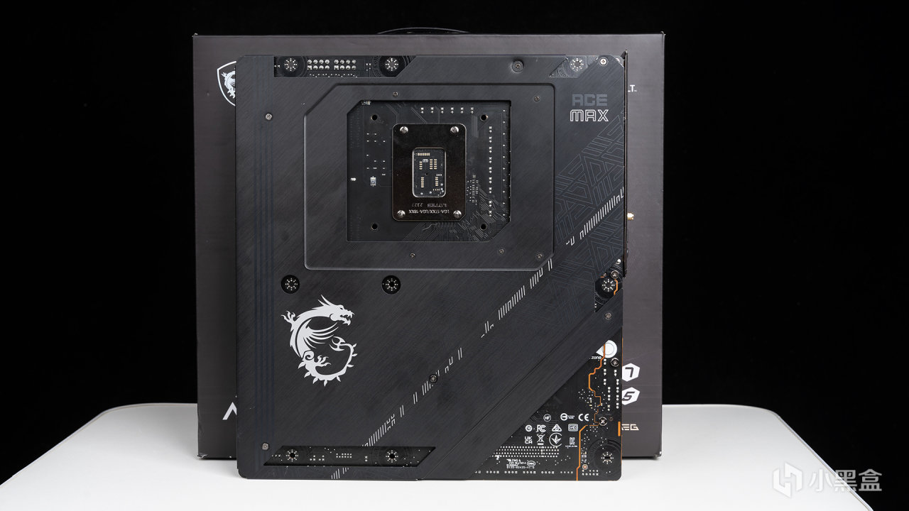 MEG Z790 ACE MAX 战神为其8层服务器级PCB配上了全覆盖的金属背板,不仅使主板更加坚实牢靠,而且在背板和PCB之间还存在导热垫,可以加强主板散热性能。