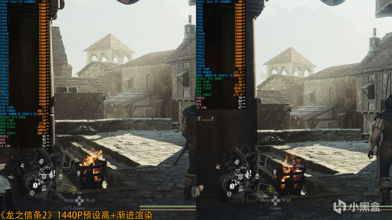 《龙之信条2》直至目前为止,官方还没修复城镇NPC过多会给CPU造成较大负载的问题,在城镇里面测试,自然更高频率和更多核心、线程的酷睿i9-14900KS会有优势一些,平均帧三种分辨率综合下来领先8%左右,1% LOW帧则是浮动在4%~8%左右的差距。