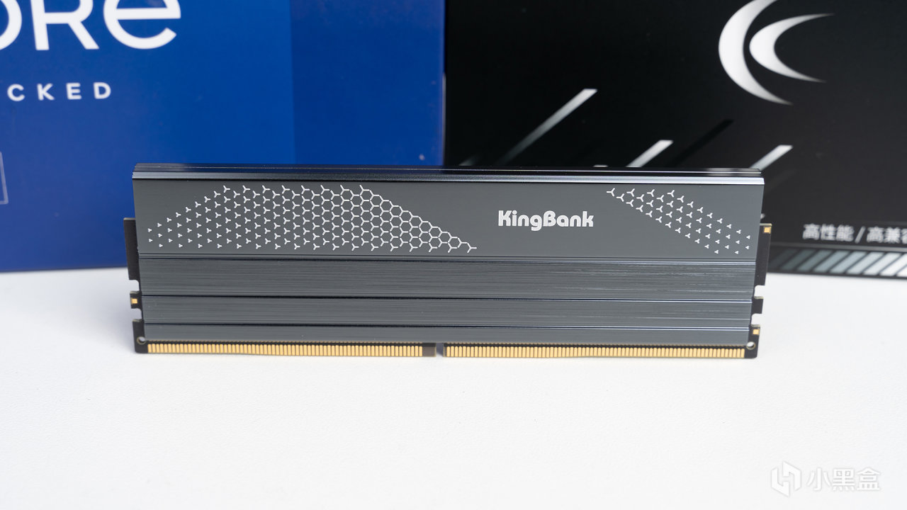 金百达星刃和黑刃系列一样都属于纯黑无光设计,个人是挺喜欢这种低调风格的,内存铝合金马甲上半部分采用简洁的纹理和KingBank LOGO修饰,下半部分拥有分层式、金属拉丝处理区域,整体颜值很能打。