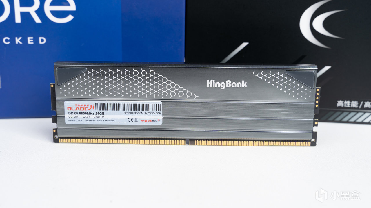 这次对比测试也把内存配置拉满,做到尽可能避免瓶颈,准备了来自金百达星刃DDR5 6800 24GB*2套装,包装采用了金百达旗下产品统一的黑色简洁背景风格,下方标有高性能、高兼容、即插即用和疾速玩的口号。