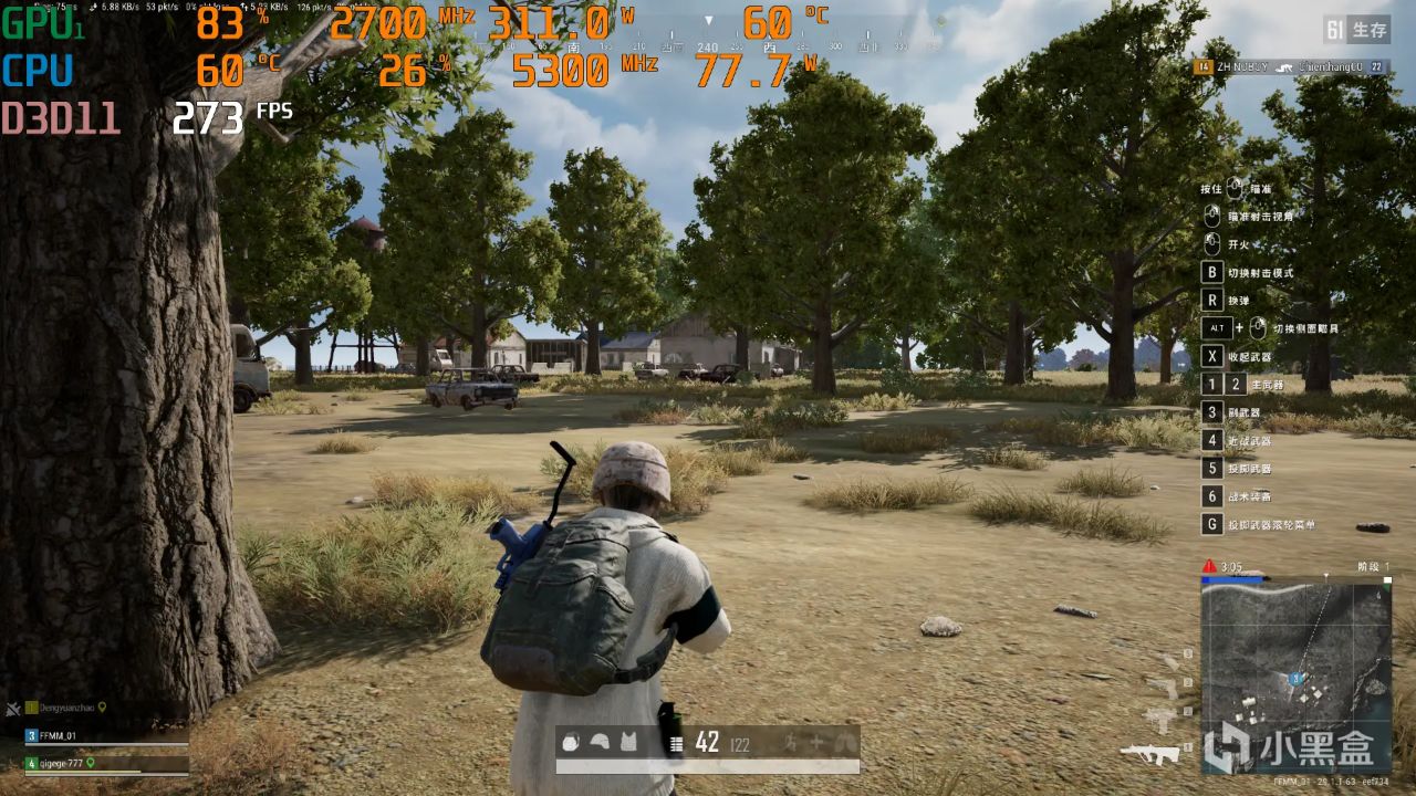 首先是4800MHz的頻率下,在《絕地求生》中游戲幀數一般都能保持在280FPS左右,上限偶爾能達到300FPS左右;不過下限也十分誇張,有時候能掉到200幀出頭。
