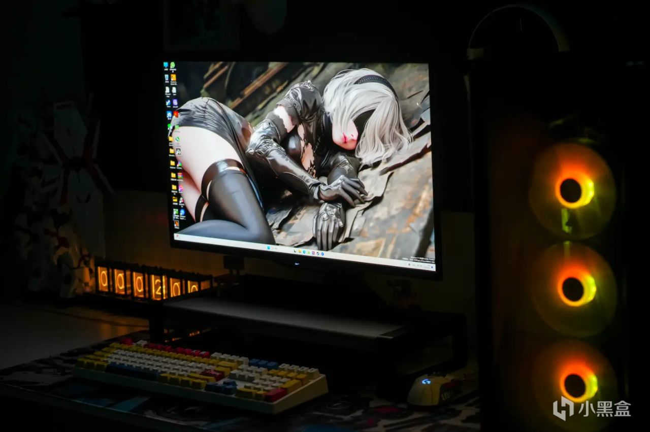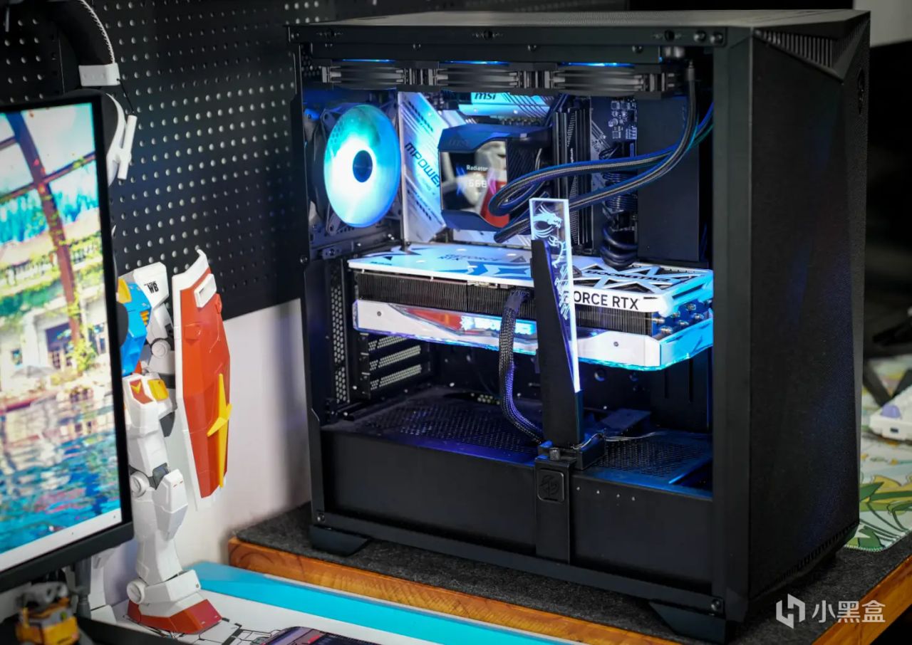 上機效果圖,雖然不支持ARGB燈效,但拋光設計的外觀配合機箱內部的光污染還是比較炫酷的。
