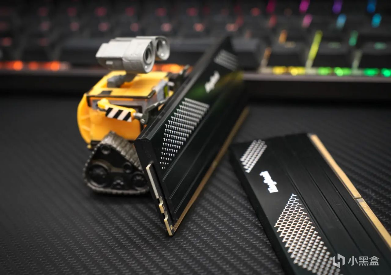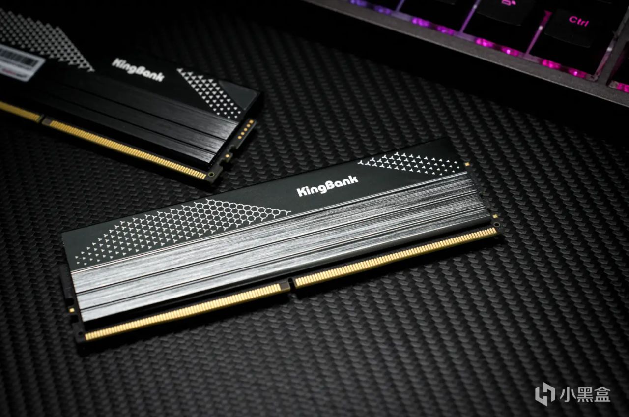 顏值方面,個人覺得金百達星刃內存在無光內存中算是比較出衆的,其採用了黑色拋光工藝設計的金屬散熱馬甲,結合一些條紋以及蜂巢元素印花符號,感覺非常內斂,所以這次拍照調試我也用上了暗黑風。