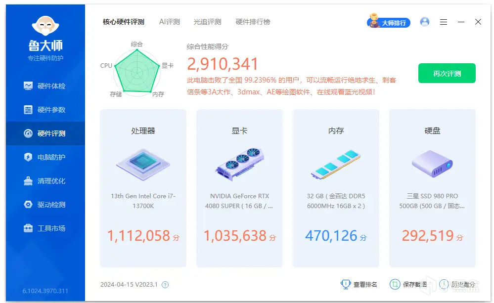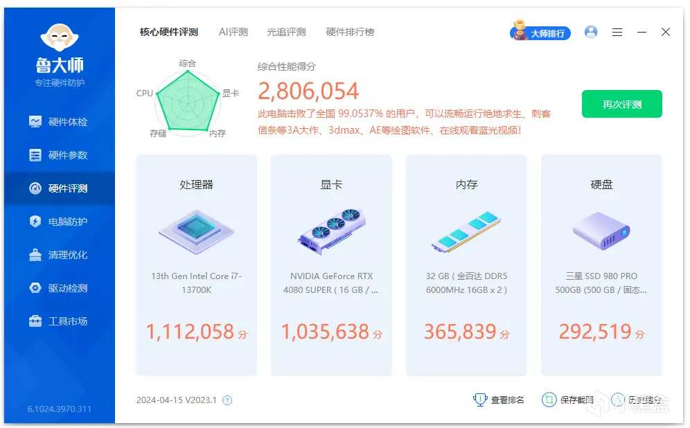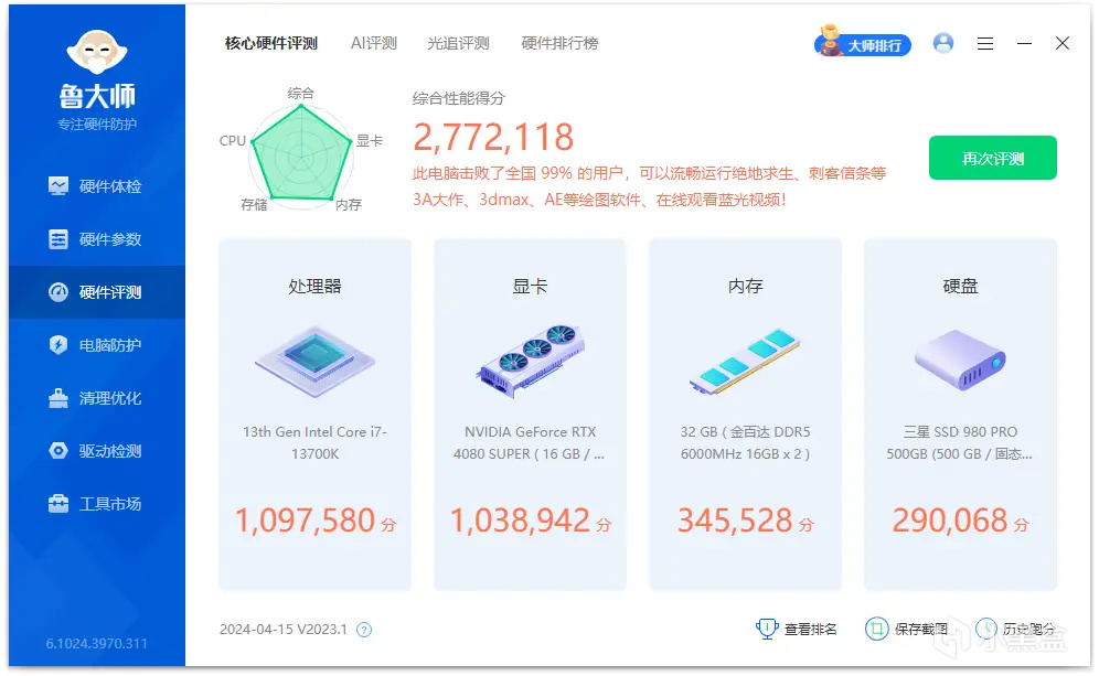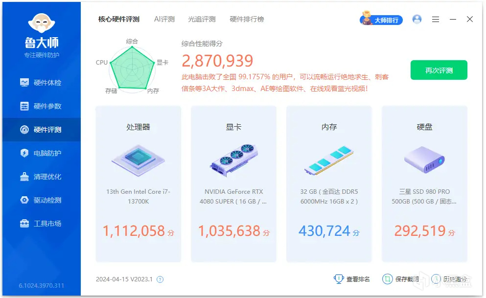 魯大師得分爲430724分。