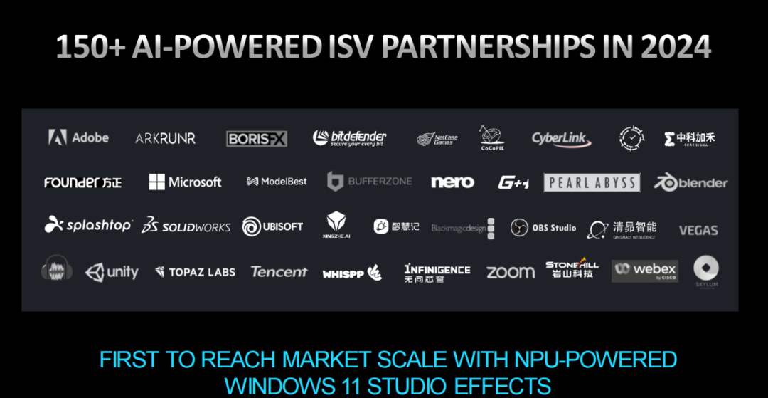 預計到2024年底,AMD將會和超過150個ISV實現基於AI驅動的合作,其中既包括像Adobe、微軟、ZOOM等國際合作夥伴,也有中國本地的ISV合作伙伴。