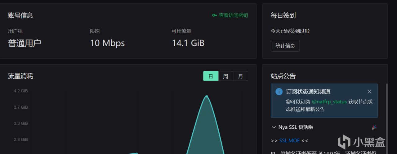 普通用户完全可以算是免费使用,每天去网站主页签到,领取的流量足够使用,最多只能创建2个隧道。