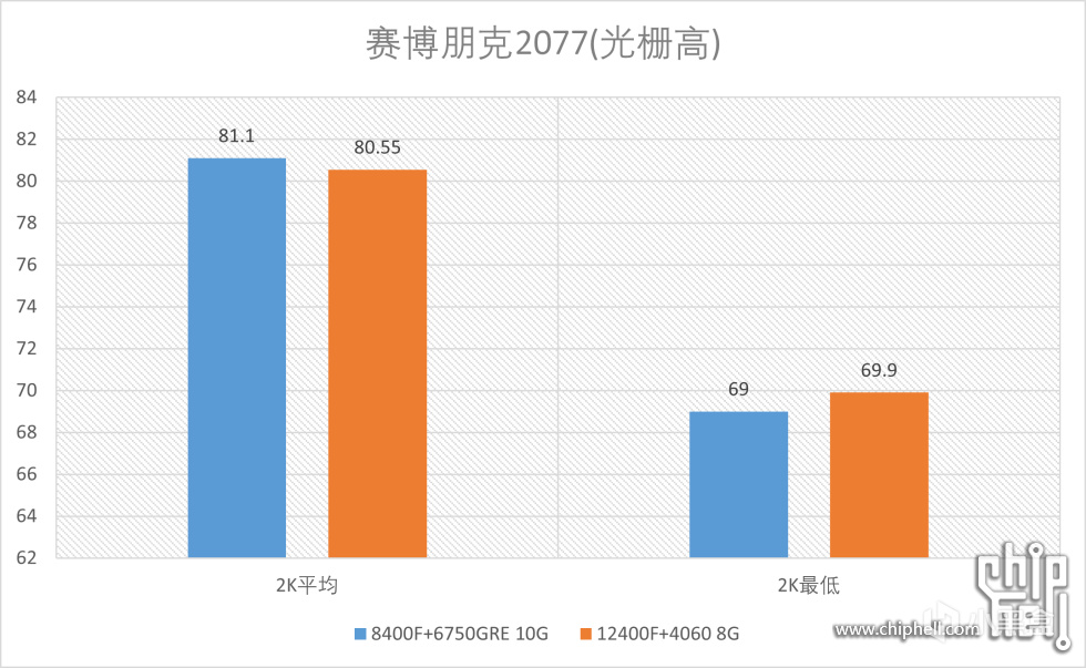 下面的測試全爲使用2K分辨率與預設高特效完成,可以看到6750GRE+8400F的組合在大部分的情況下是可以持平乃至小勝12400F+4060的。而在某些對於CPU要求更高的遊戲比如文明6中,就會出現8400F+6750GRE明顯領先的情況
