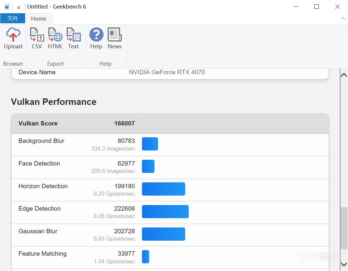 Geekbench 6提供了GPU相關的基準測試,包括了OpenCL和Vulkan,用來分別對並行計算\通用計算任務以及對遊戲、3D渲染等圖形密集型任務進行基準測試。技嘉雪鷹RTX 4070 AERO OC 12G在Vulkan下的測試結果爲166007。