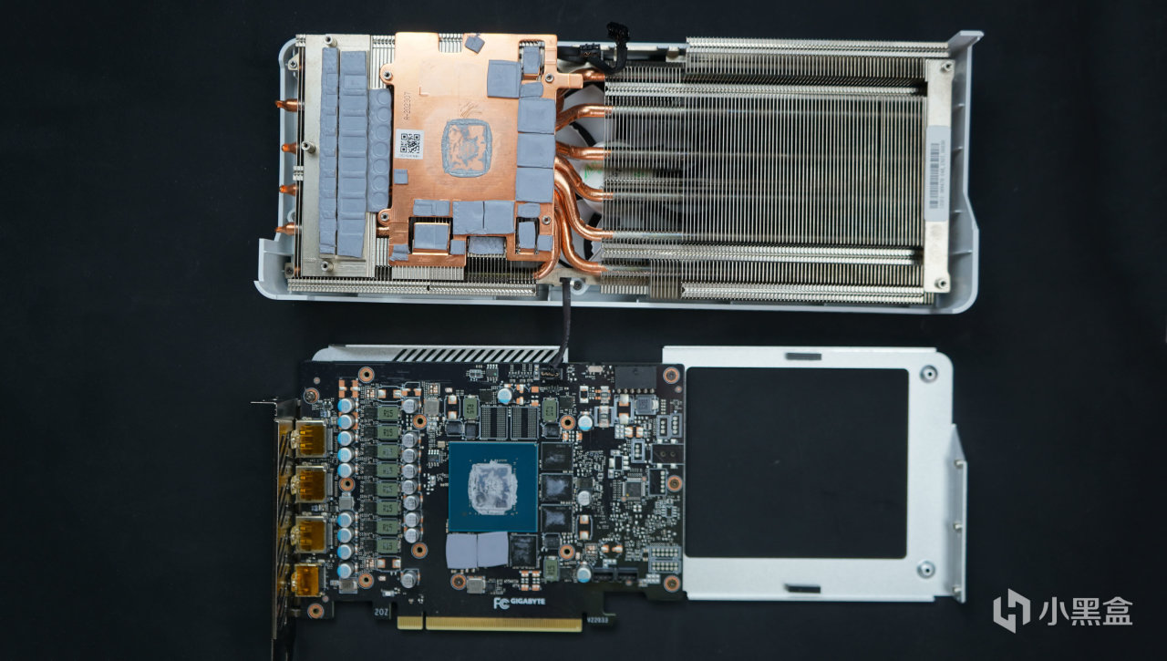 下面我簡單對雪鷹 RTX 4070 AERO OC 12G做個拆解展示。拆解比較簡單,上方是核心的散熱部分,下方是PCB部分,相對來說散熱設計方面的堆料比較明顯,用料很紮實,細節做工也不錯。