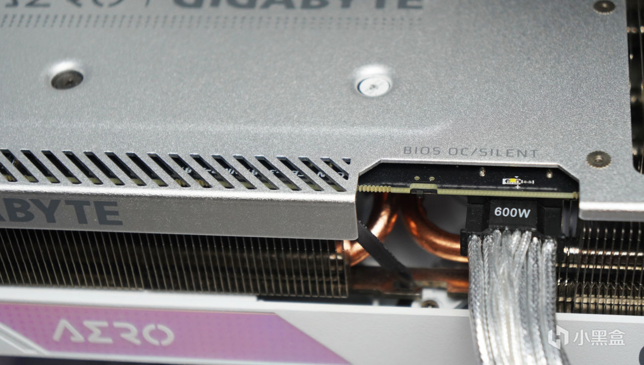 雪鷹 RTX 4070 AERO OC 12G在供電接口方面採用了16PIN設計,雖然說ATX 2.x電源可以搭配轉接線爲顯卡供電使用,但我感覺更換成支持PCIe 5.0規範的ATX 3.0電源會更好。 雪鷹 RTX 4070 AERO OC 12G支持雙 BIOS 模式,出廠預設爲OC性能模式,模式切換後需要重開機纔會啓動。雪鷹 RTX 4070 AERO OC 12G爲風扇模式設計的獨立開關,可以一鍵實現靜音Silent與高性能模式OC切換。此外供電接口處設置了指示燈,當出現供電異常時會閃爍提醒玩家,避免供電問題導致顯卡無法正常工作或是損壞的問題。