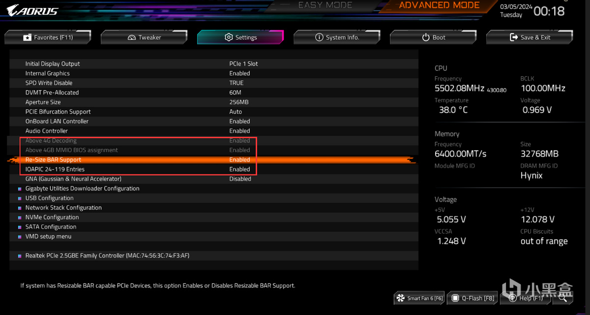 測試前,我將主板中的Above 4G Decoding和Re-Size Bar兩個選項全部開啓。