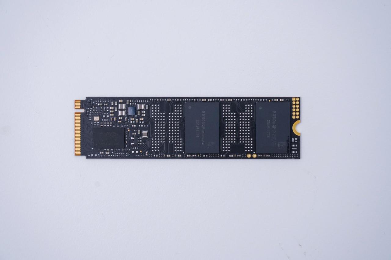 撕下NV7200的贴纸可以看到联芸MAP1602主控,单面采用2个佰维自封长存颗粒,单颗粒容量500GB,无缓存设计,采用HMB内存缓冲技术。