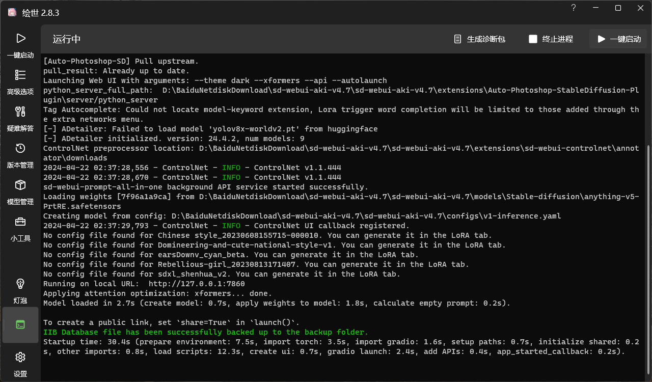 此外,我也尝试在佰维NV7200上面搭载Stable Diffusion AI工具,前期启动Stable Diffusion的时候这个时候需要强大的读写性能,因为里面拥有巨量的模型库,而我们可以看到,加载时间也是极短。