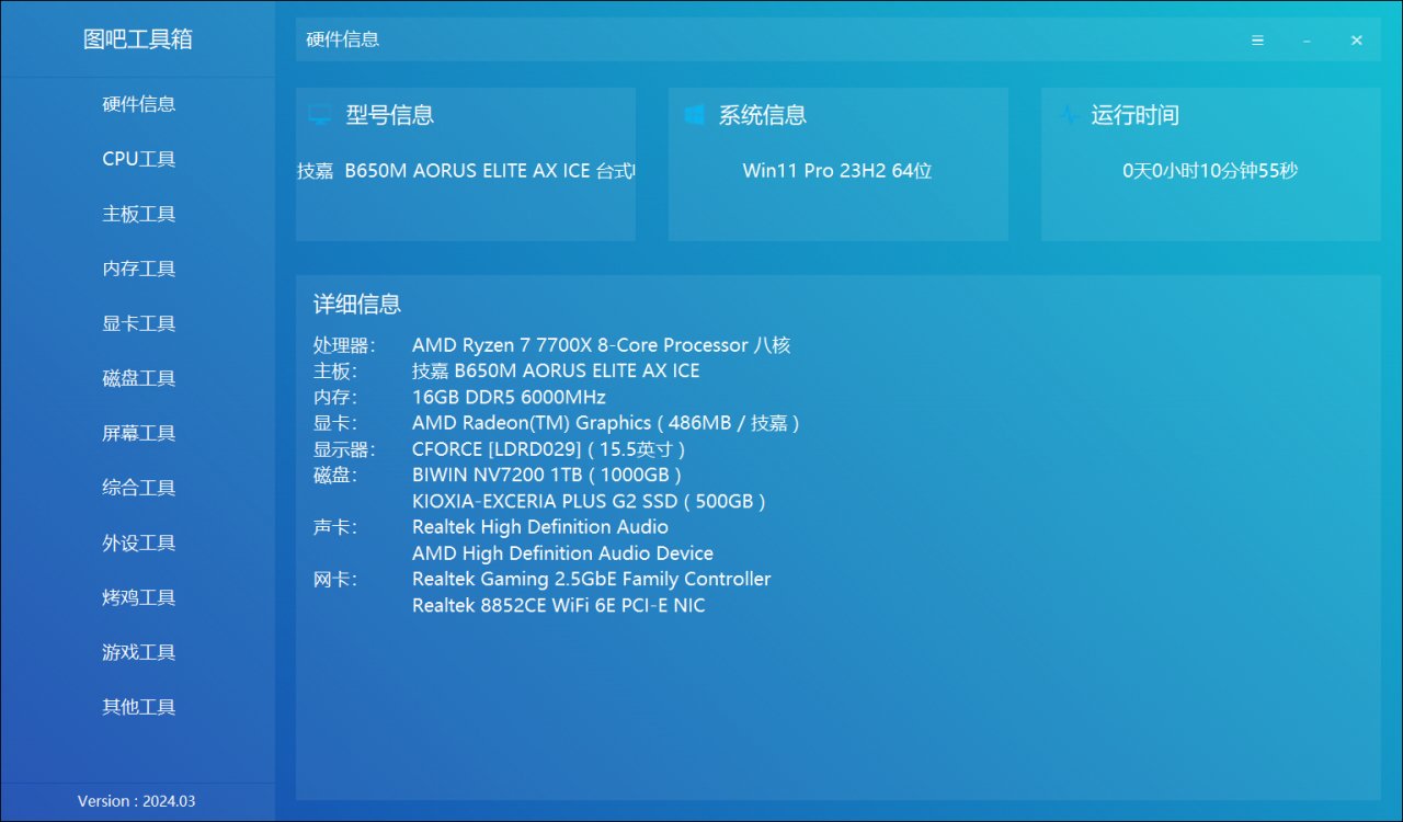 接下来采用AMD锐龙7 7700X+技嘉B650M平台进行性能测试。