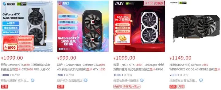 某東自營萬年800元左右的價格。儘量買雙風扇卡,單風扇卡實測下來,溫度較高容易降頻掉幀(雖說顯卡本身溫度功耗並不高)