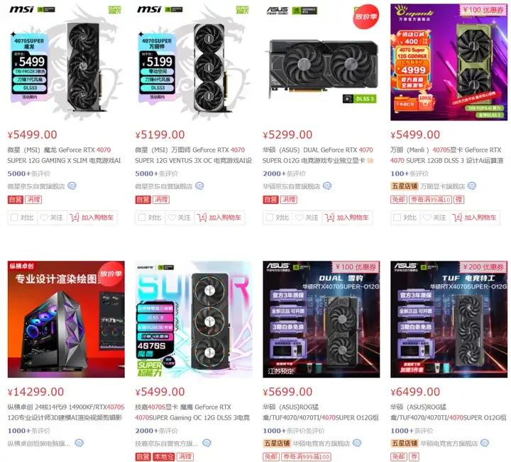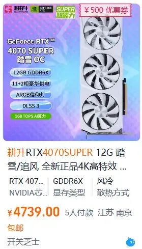 如果你預算充裕,且有AI、生產力等需求,可以考慮上4070S。開關芝士的4070S有特價,基本不到5K: