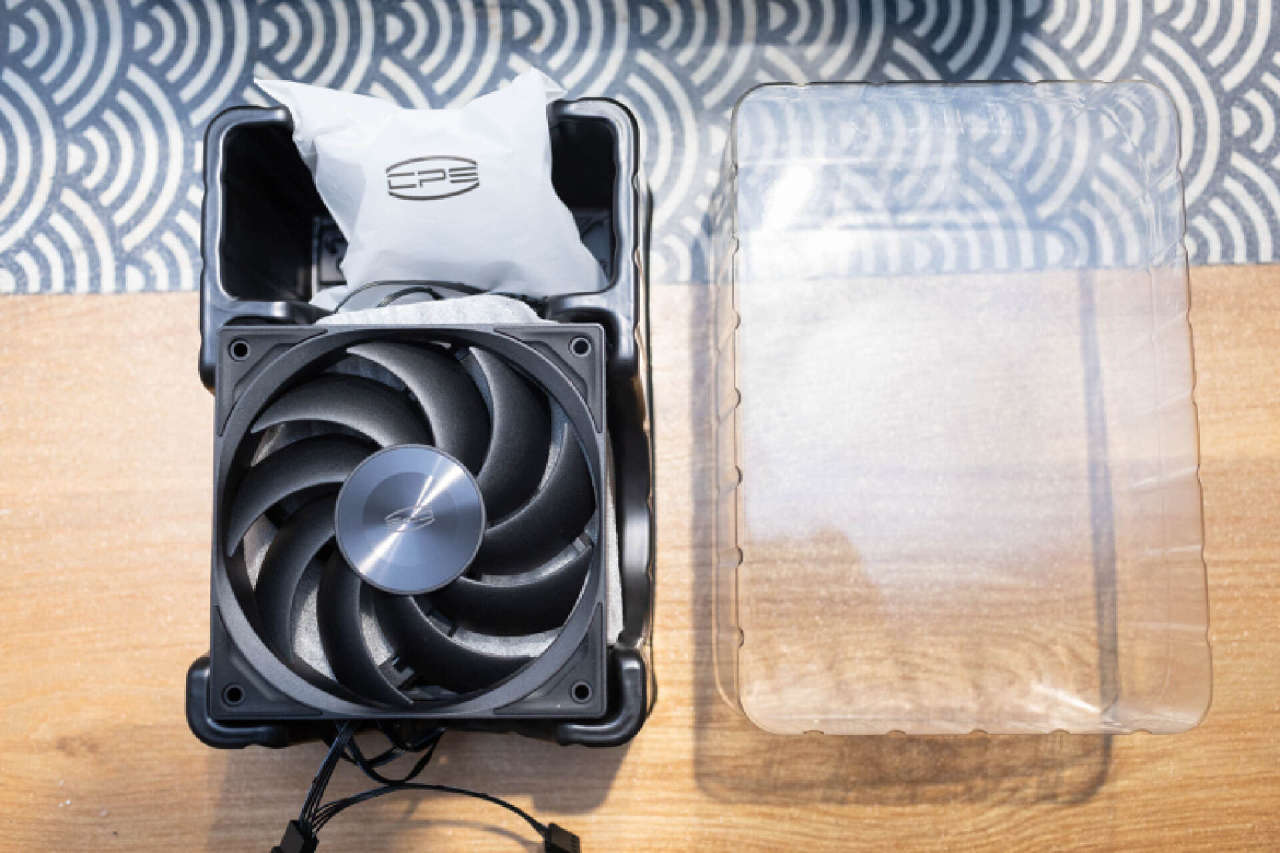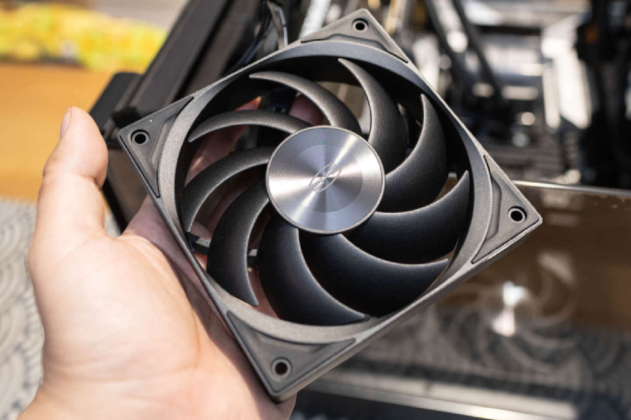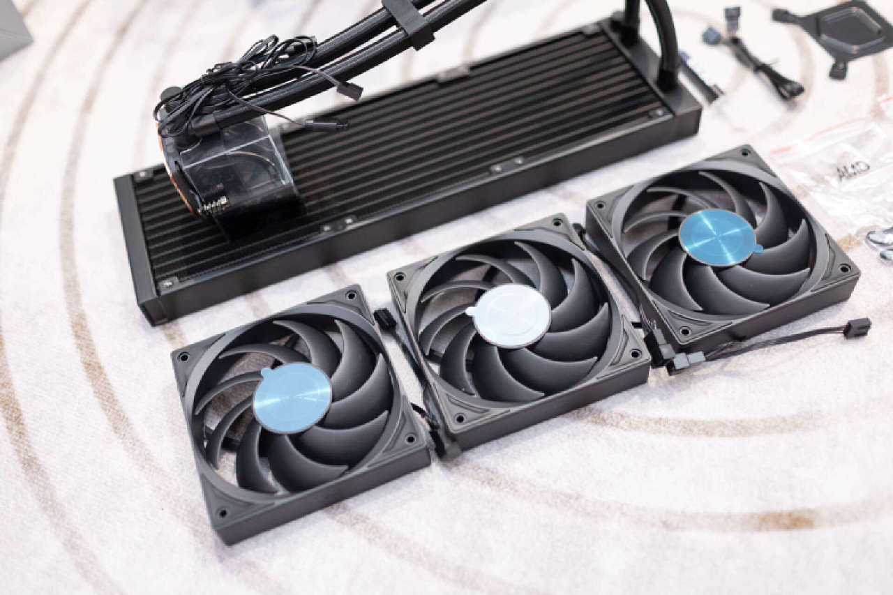 这套水冷并没有选择光污染风扇,而是搭载了3枚性能级散热风扇。超频三「臻」系列F5 R120,风扇重量压手,质感很不错。