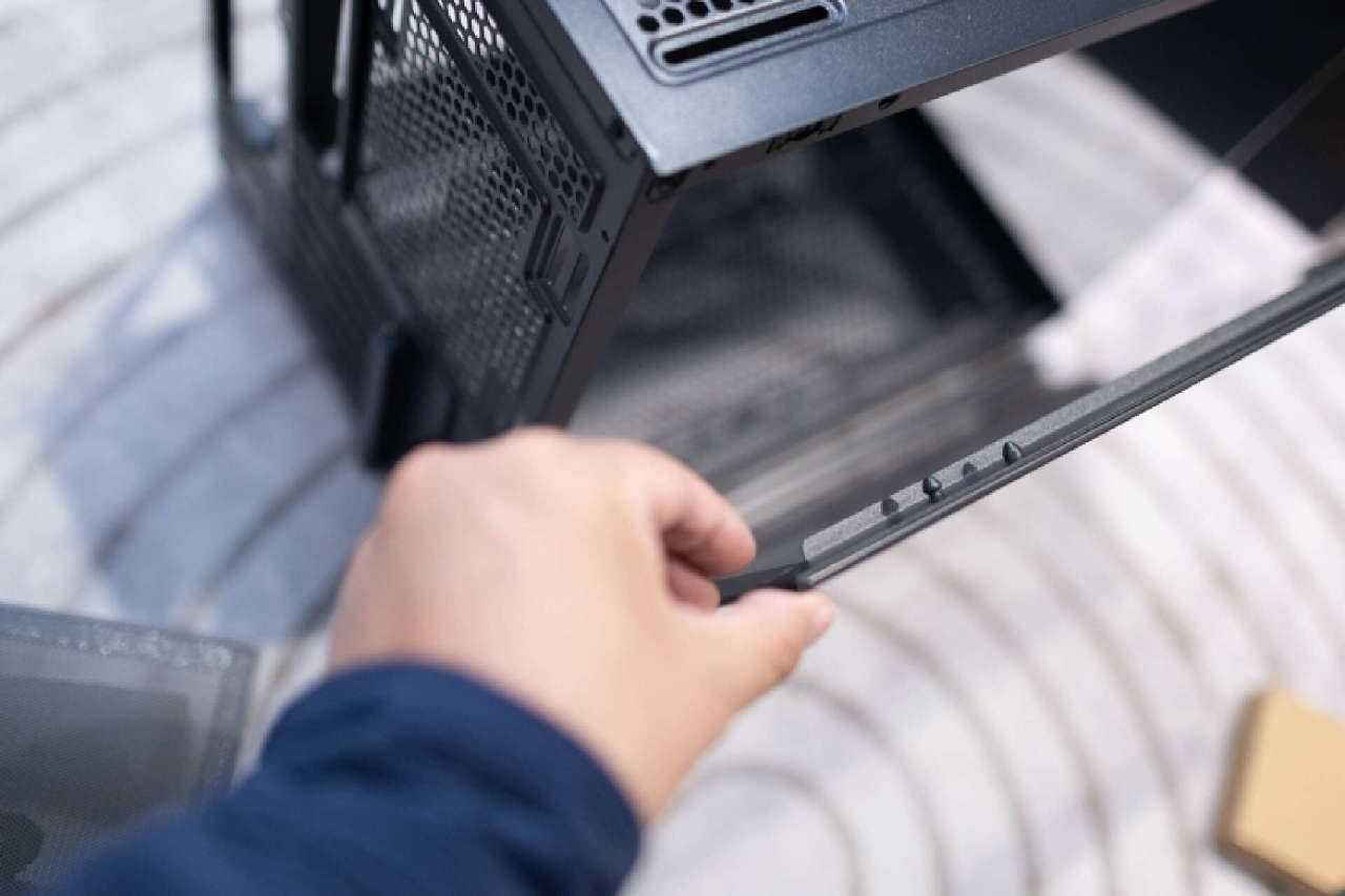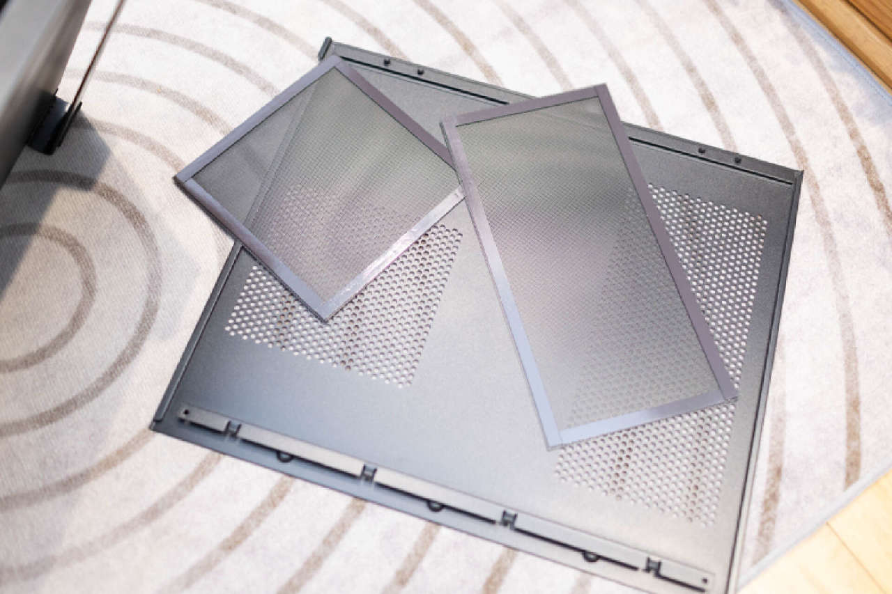 细节方面,可以看到右侧面板在对应的散热栅格内部额外覆盖了磁吸式防尘网,整个副仓可以保证极佳的散热,并且防护也非常全面。
