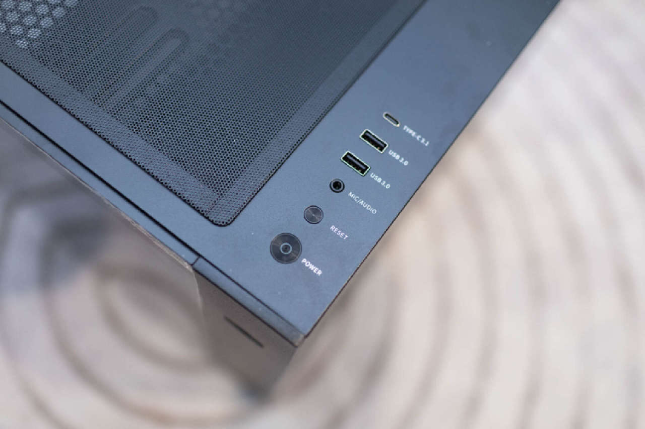 机箱的IO面板位于机箱顶部的侧边,传统的电源键,重启键,音频接口,USB和TYPE-C。不过2个USB均提供的USB3.0规格,TYPE-C接口也升级到了USB3.1规格,还是非常有诚意的。