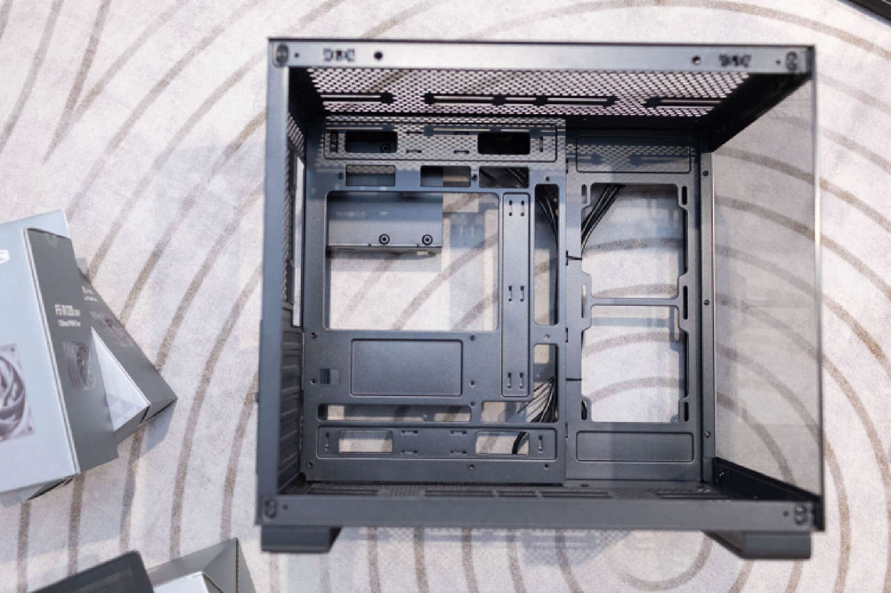 机箱的主仓空间布局合理,可以支持最大ATX规格的主板,并且提供了齐全的开孔和走线槽, 能支持最新的各类背插主板型号。
