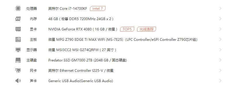 配置方面,我这套I7+4080+32G+2T的组合也能兼顾游戏办公的需要。