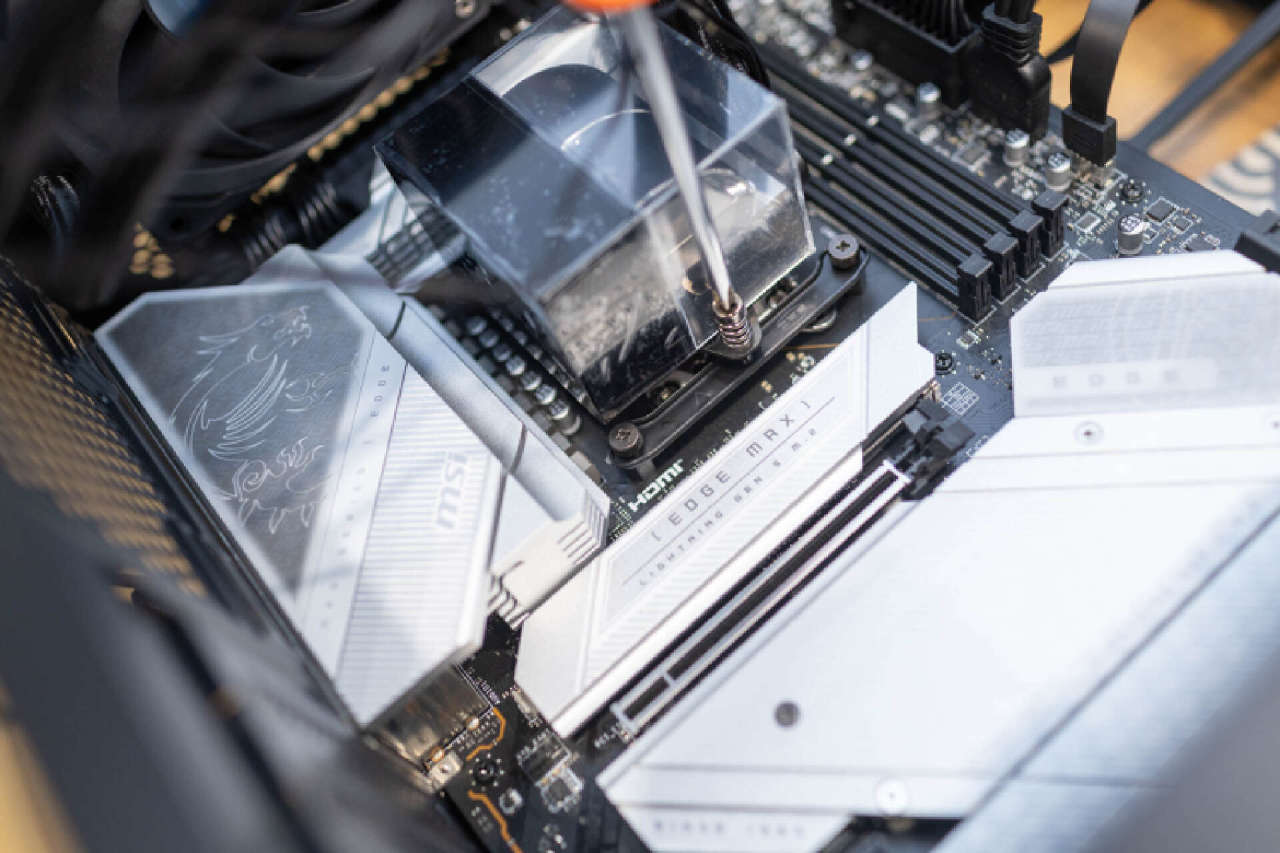 冷头的安装也没有采用常见的4柱螺丝固定,而是升级成了类似风冷的两点是固定方案,整个安装过程变得更加的简单。