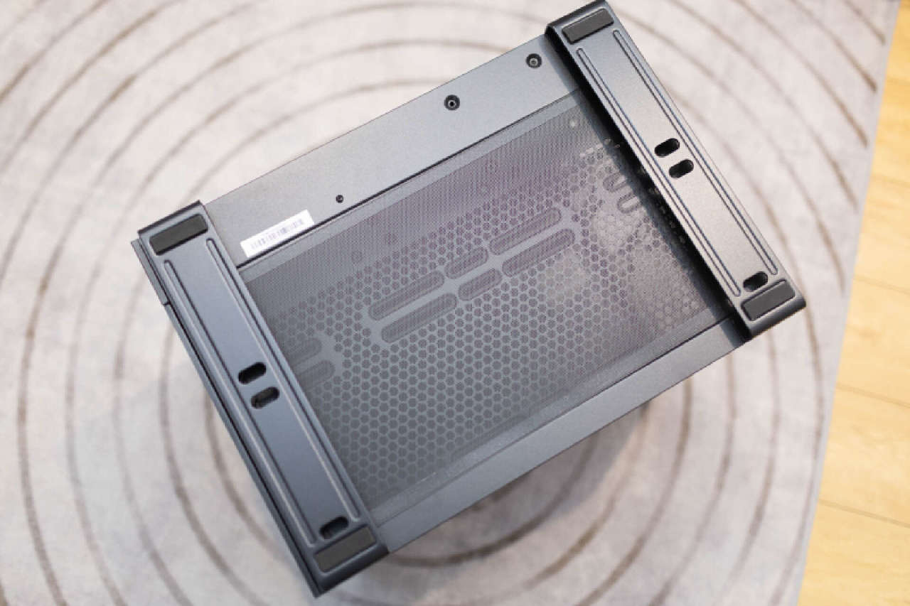 机箱底部兼容12cm或者14cm的风扇,同样配置了全尺寸磁吸防尘网,配合顶部风扇可以构建出完整的垂直风道。