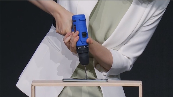 首先,Monica让K12从1.5米高度摔向大理石地面,接着用高跟鞋狠狠踩踏屏幕,随后又用OPPO K12连续砸核桃,甚至用电钻钻手机,结果K12毫发无损。