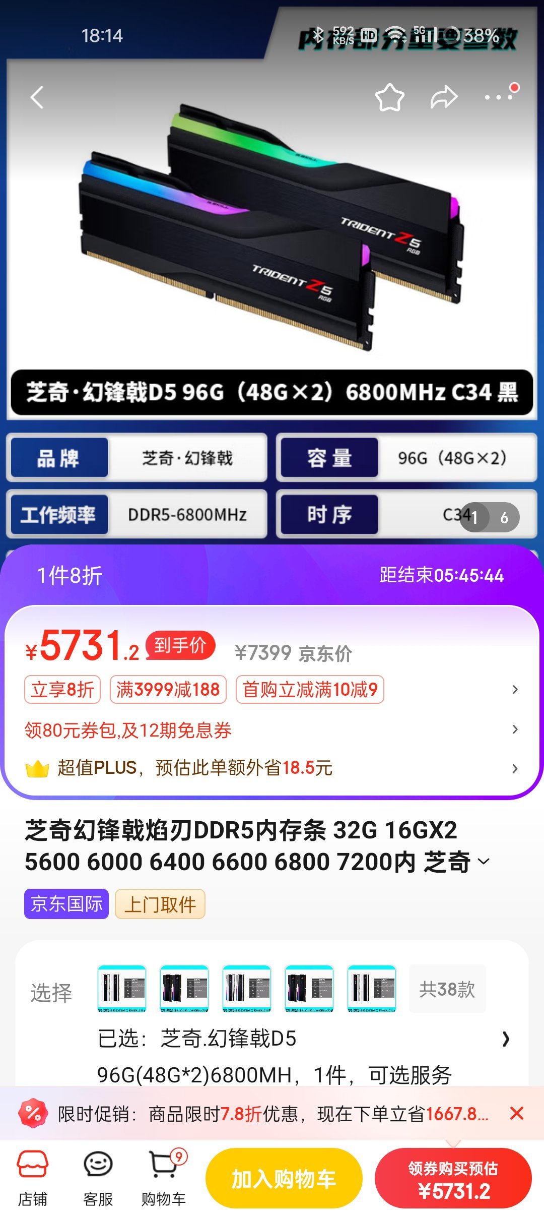 内存:芝奇96g(48×2)6800频×2