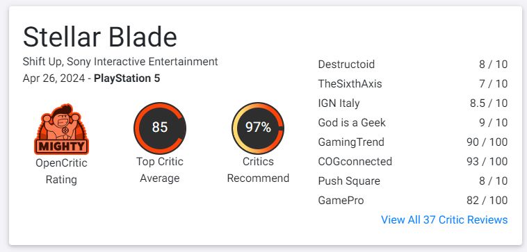 OpenCritic評分85/100
