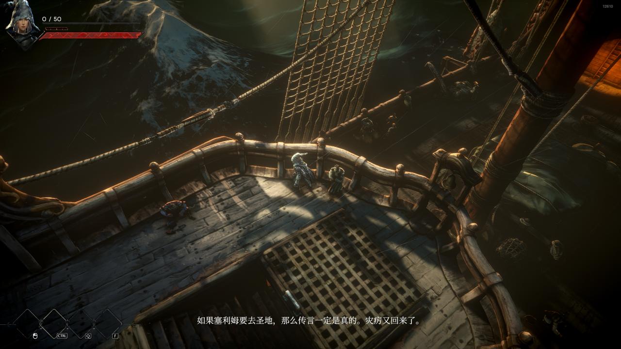 在大海中航行的一艘船上,船長帶着主角準備去聖地島。主角被稱爲塞利姆,通過跟船員簡單的對話可以知道,塞利姆這個組織不被人喜歡,像是祕源術士一樣的感覺。但是也可以知道,塞利姆非常強大,是對抗災癘的專家,只要他們出現就代表災癘出現了。