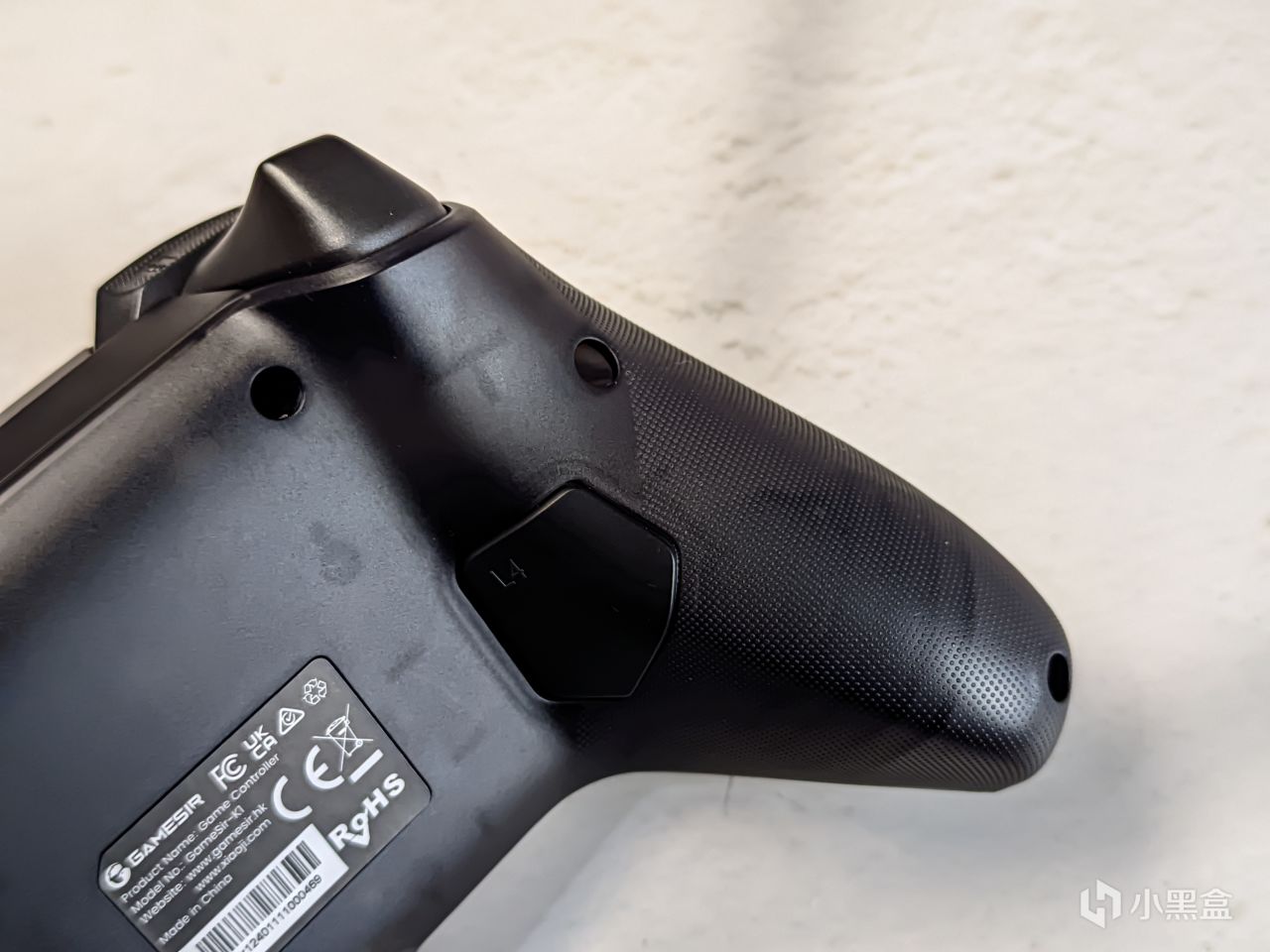 背面的自定义背键是给到了两个位置,比较可惜没有四背键加持,不过毕竟是授权款,应该是不能太魔改了,背部采用的是磨砂塑料工艺,并且将大部分的加强筋放在了这个位置,所以看着就没有正面那么漂亮了,但好在应该没人天天背着玩手柄吧,所以至少对我来说影响并不算大。