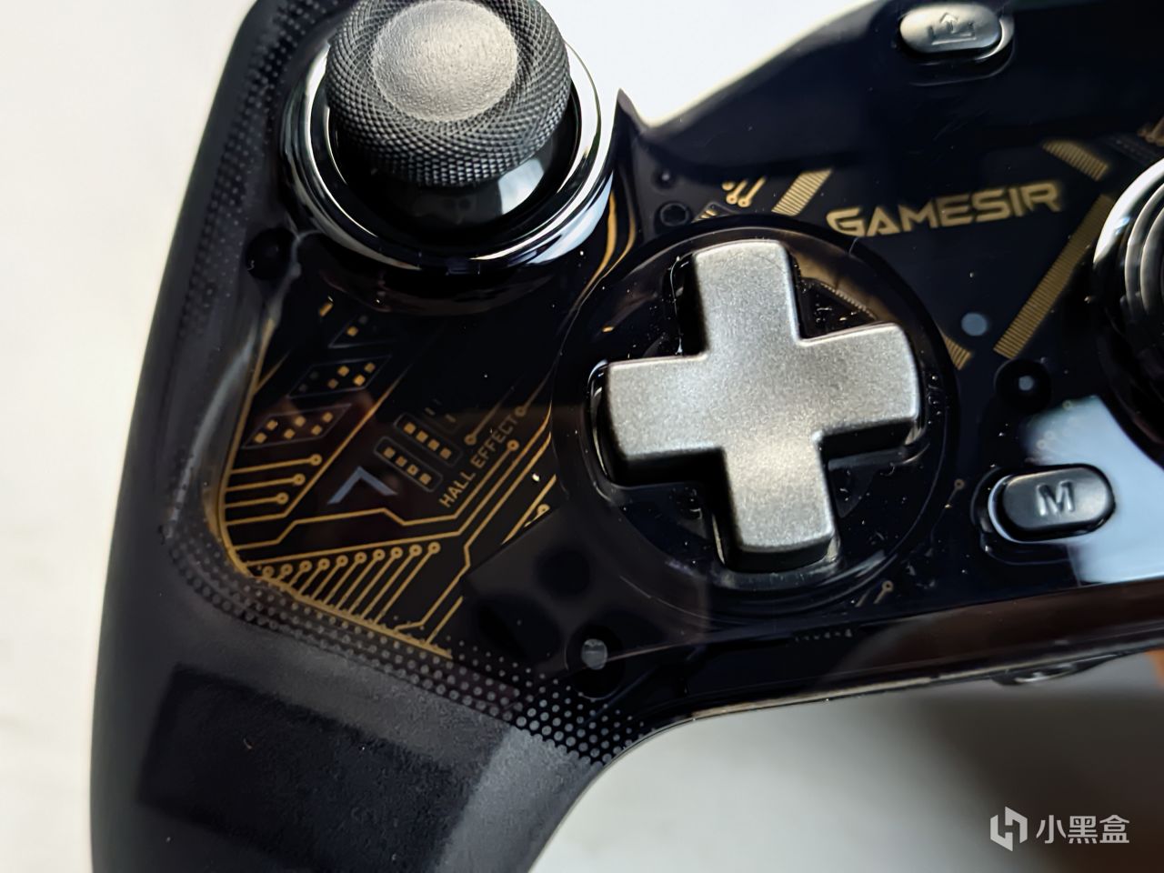 十字键部分采用的是轻触开关的设计,相较于传统导电胶的表现要更为快速,手感也更好一些,不过十字键并不支持更换,所以并不能换上我的圆盘十字键,又是不能搓轮盘的一天呢。当然大十字的好处就是,其在格斗游戏方面更有优势,而影舞者的定位就是专业电竞手柄,所以选用大十字也是无可厚非的事情。